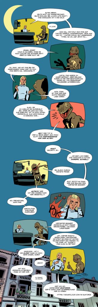 Mit dem Kamäleon haben wir den deutschsprachigen Superhelden neu erfunden (falls es denn überhaupt ein Superheld ist und nicht bloß das Hirngespinst eines zeichnenden und musizierenden Rheinländers namens Leon).